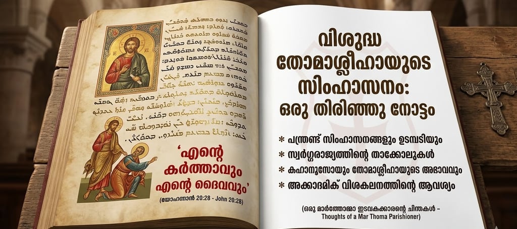 ഇന്ത്യൻ ഓർത്തഡോക്സ് വിഭാഗം 1974-ൽ ഔദ്യോഗികമായി ഉയർത്തിക്കൊണ്ടുവന്ന "വിശുദ്ധ തോമാശ്ലീഹായുടെ അപ്പസ്തോലിക സിംഹാസനം" എന്ന വാദം അമ്പത് വർഷങ്ങൾ പിന്നിടുമ്പോഴും കേവലം വൈകാരികമായ അവകാശവാദങ്ങൾക്കപ്പുറം അക്കാദമിക് ആയി സ്ഥാപിക്കാൻ അവർക്ക് സാധിച്ചിട്ടില്ല. സഭയുടെ കാതോലിക്കയും മറ്റ് വക്താക്കളും നടത്തുന്ന മുടന്തൻ ന്യായങ്ങൾക്കപ്പുറം, ഈ വിഷയത്തെ ആഴത്തിൽ വിശകലനം ചെയ്യുന്ന ഒരു പ്രബന്ധം പോലും ഓർത്തഡോക്സ് വിഭാഗത്തിന് ലോകത്തിന് മുന്നിൽ സമർപ്പിക്കാൻ അവർക്ക് കഴിഞ്ഞിട്ടില്ല എന്നത് വസ്തുതയാണ്. കത്തോലിക്കാ സഭ പോലും സങ്കീർണ്ണമായി കാണുന്ന ഈ വിഷയത്തിൽ, തിരുവെഴുത്തുകളെയും ചരിത്രത്തെയും തെറ്റായി വ്യാഖ്യാനിച്ചുകൊണ്ടാണ് ഈ വാദം നിലനിൽക്കുന്നത്. ഒരു മാർത്തോമ്മാ ഇടവകക്കാരൻ എന്ന നിലയിൽ, പരിശുദ്ധ തോമാശ്ലീഹായ്ക്ക് ഒരു സിംഹാസനം ഉണ്ടെന്ന് തെളിയിക്കപ്പെട്ടാൽ അത് തികച്ചും അഭിമാനകരമാണ്; എന്നാൽ സത്യത്തെ ബലികഴിച്ചുകൊണ്ടുള്ള സിംഹാസനവാദം ദൈവശാസ്ത്രപരമായി നിലനിൽപ്പില്ലാത്തതാണ്.