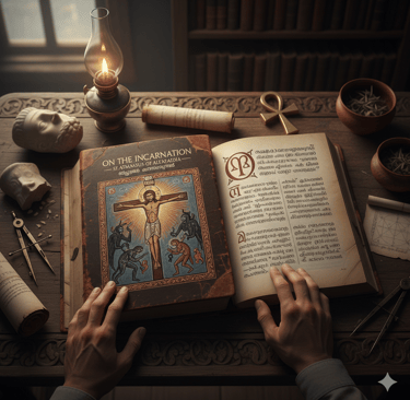 വിശുദ്ധ അത്തനാസ്യോസിന്റെ 'വചനത്തിന്റെ മനുഷ്യാവതാരം' എന്ന ഗ്രന്ഥം, മനുഷ്യവർഗ്ഗത്തിന്റെ വീഴ്ചയും അതിനുള്ള ദൈവിക പരിഹാരവും ചർച്ച ചെയ്യുന്നു. ദൈവത്തിന്റെ പ്രതിഛായയിൽ സൃഷ്ടിക്കപ്പെട്ട മനുഷ്യൻ പാപം വഴി മരണത്തിനും നാശത്തിനും അടിമയായപ്പോൾ, ആദിയിൽ മനുഷ്യനെ സൃഷ്ടിച്ച അതേ വചനത്തിന് (Logos) മാത്രമേ അവനെ പുനഃസൃഷ്ടിക്കാൻ കഴിയുമായിരുന്നുള്ളൂ എന്ന് അത്തനാസ്യോസ് സ്ഥാപിക്കുന്നു. മരണത്തിന്റെ കടം വീട്ടുന്നതിനായി ഒരു മനുഷ്യശരീരം സ്വീകരിച്ച വചനം, കുരിശുമരണത്തിലൂടെ മരണത്തെ ഇല്ലാതാക്കുകയും പുനരുത്ഥാനത്തിലൂടെ മനുഷ്യന് അമരത്വം തിരികെ നൽകുകയും ചെയ്തു. അദൃശ്യനായ ദൈവത്തെ തന്റെ മാനുഷിക പ്രവൃത്തികളിലൂടെ വെളിപ്പെടുത്തിയ ക്രിസ്തു, മനുഷ്യൻ ദൈവതുല്യനാകേണ്ടതിനാണ് (Theosis) താൻ മനുഷ്യനായതെന്ന് ഈ കൃതിയിലൂടെ അത്തനാസ്യോസ് സമർത്ഥിക്കുന്നു.